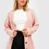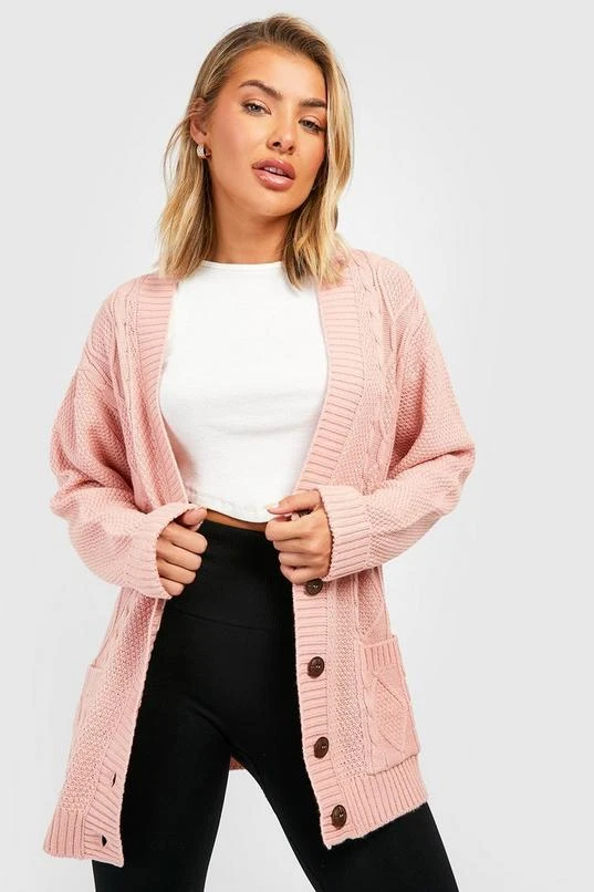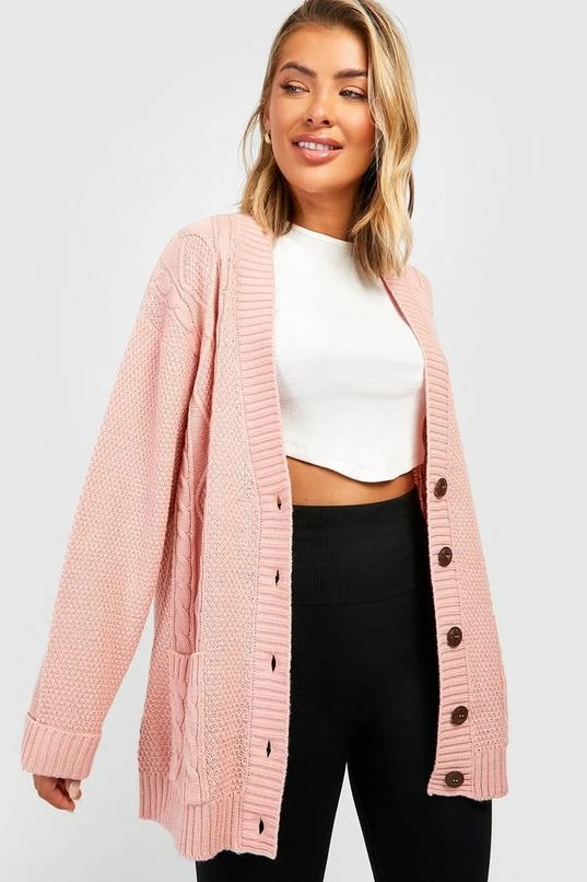 BOOHOO Cable Boyfriend Button Up Cardigan