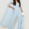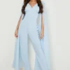BOOHOO Cape Detail Plunge Fitted Jumpsuit
