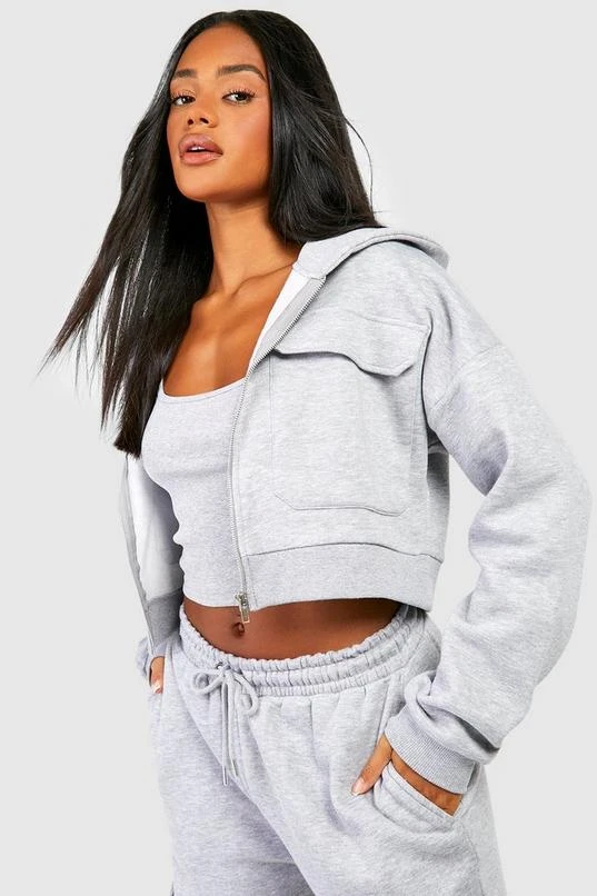BOOHOO Cargo Pocket Cropped Hoodie Straight Leg Tracksuit