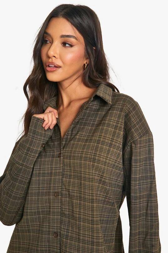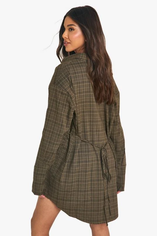 BOOHOO Check Cinched Waist Shirt Dress