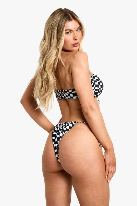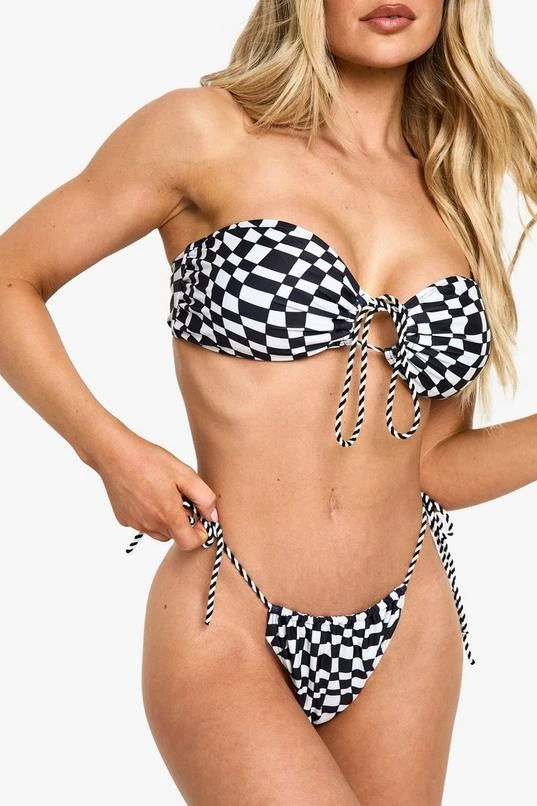 BOOHOO Checkerboard Rope Strap Halterneck Bikini Top & Tanga Tie Side Bikini Bottoms Set