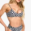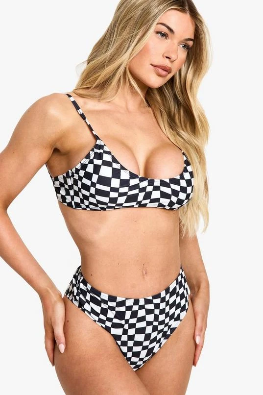 BOOHOO Checkerboard Scoop Neck Bikini Top & High Waist Bikini Bottoms Set