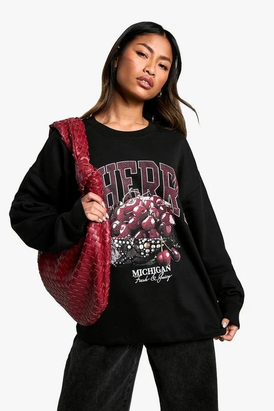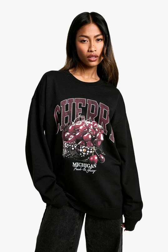 BOOHOO Cherry Slogan Oversized Sweatshirt