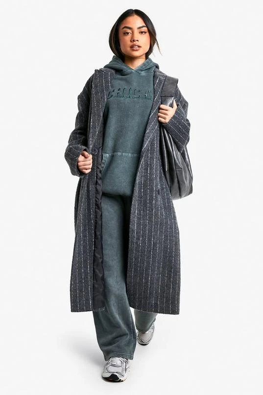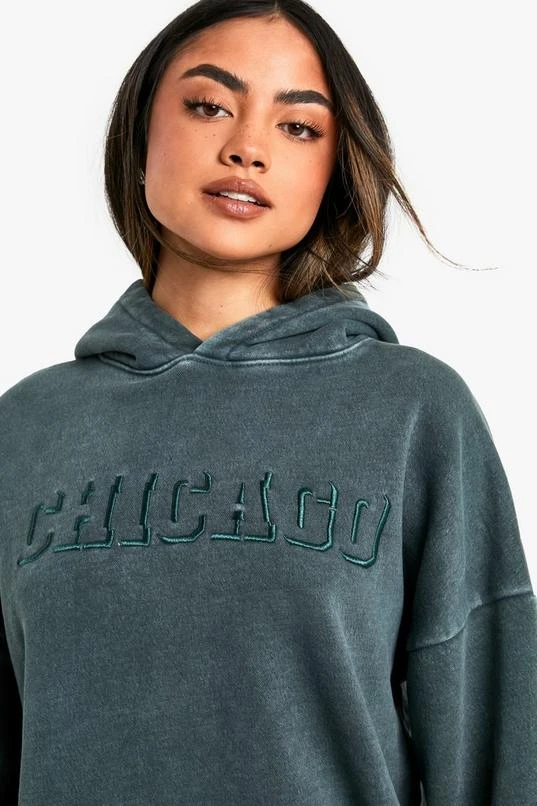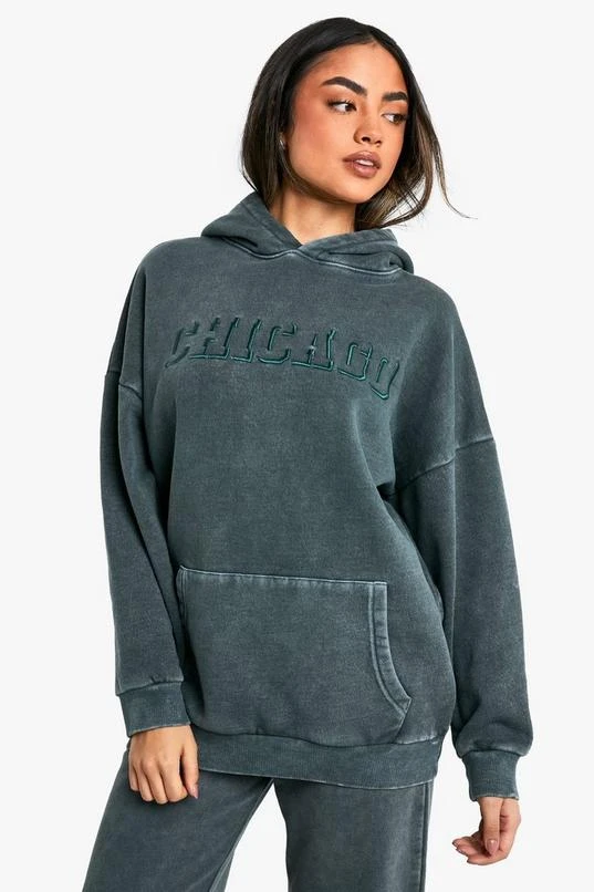 BOOHOO Chicago Slogan Embroidered Washed Oversized Hoodie
