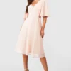 BOOHOO Chiffon Angel Sleeve Midi Skater Bridesmaid Dress