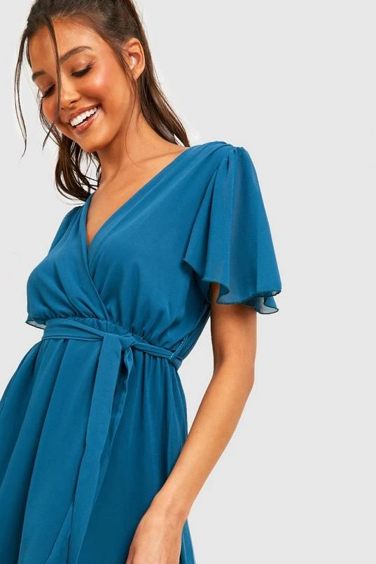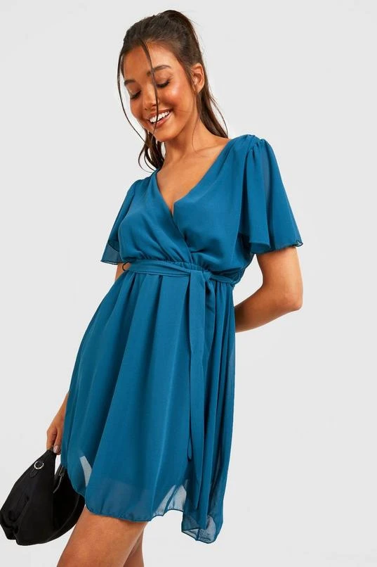 BOOHOO Chiffon Angel Sleeve Mini Dress