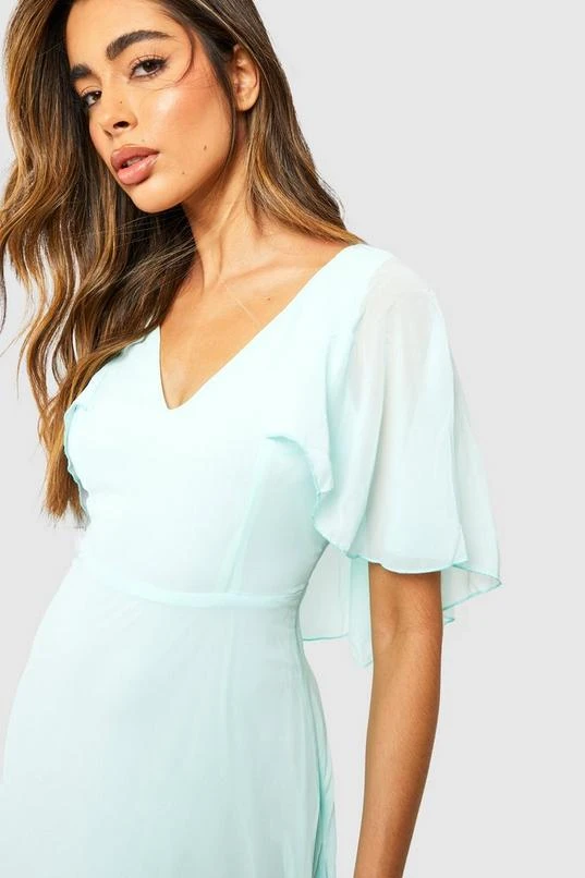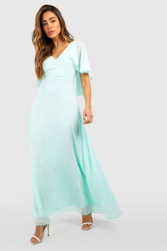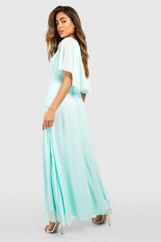 BOOHOO Chiffon Cape Sleeve Maxi Bridesmaid Dress