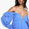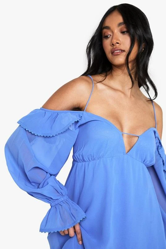 BOOHOO Chiffon Cold Shoulder Layered Mini Dress