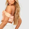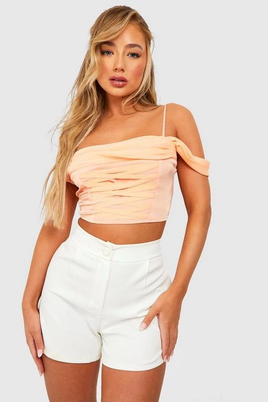 BOOHOO Chiffon Cowl Lace Up Corset Top
