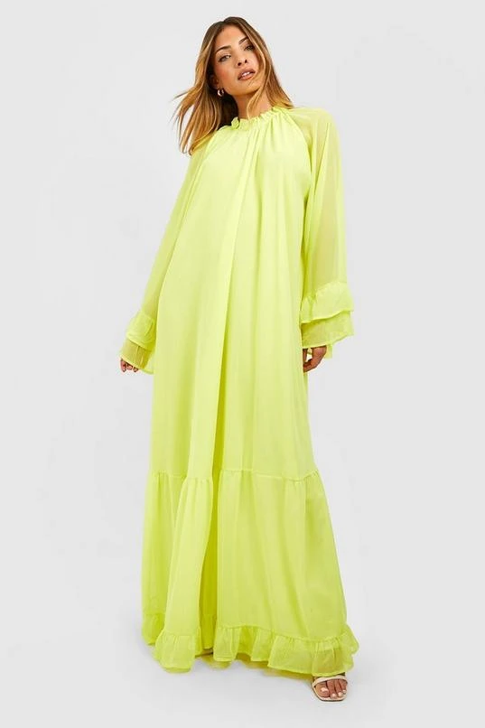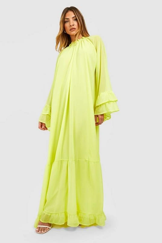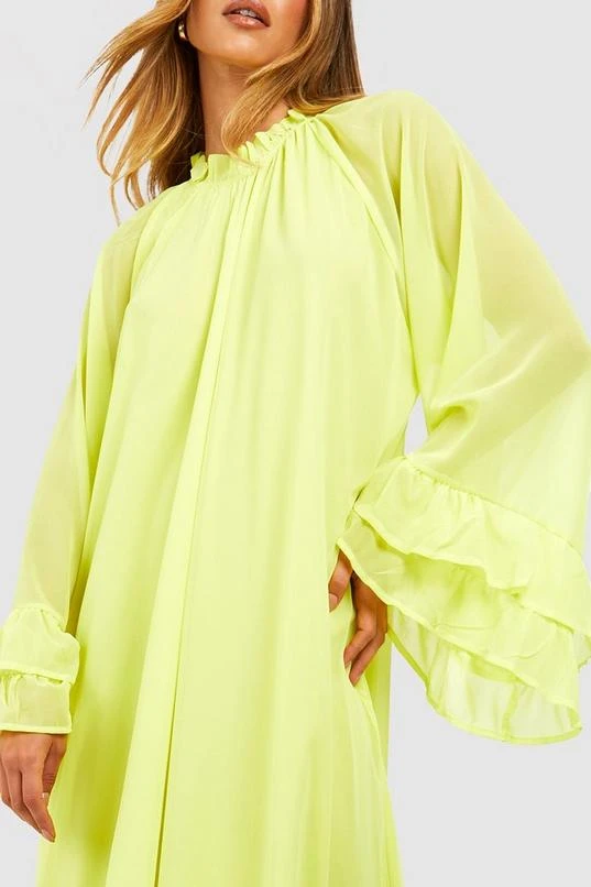 BOOHOO Chiffon Flare Sleeve Maxi Smock Dress