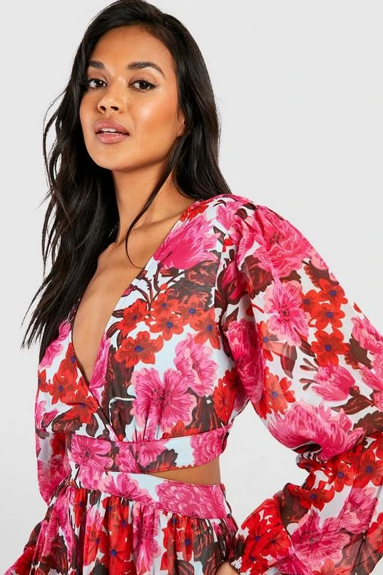 BOOHOO Chiffon Floral Cut Out Midi Dress