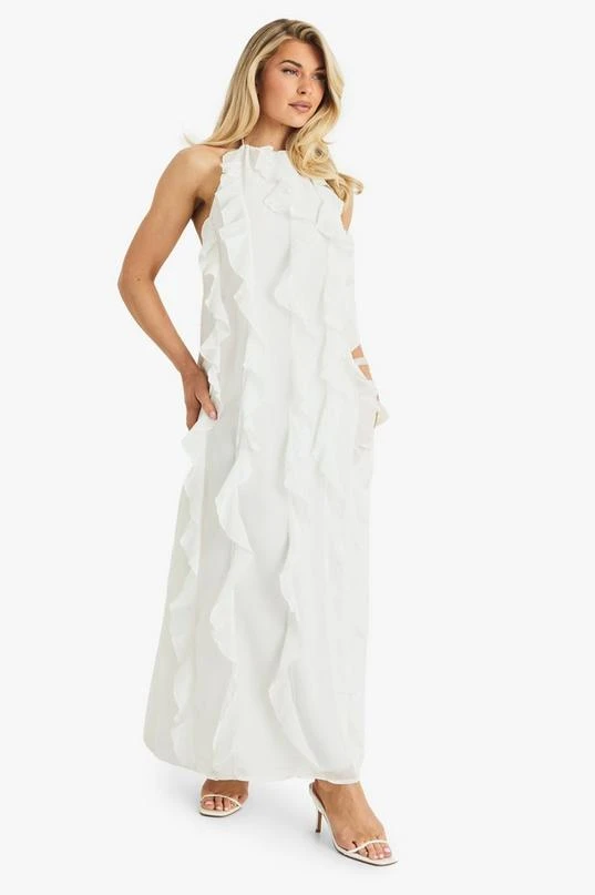 BOOHOO Chiffon Halterneck Ruffle Maxi Dress