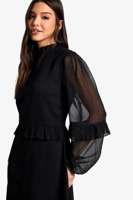 BOOHOO Chiffon High Neck Shift Mini Dress