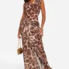 BOOHOO Chiffon Leopard Belt Buckle Maxi Dress