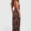 BOOHOO Chiffon Leopard Cowl Maxi Dress