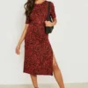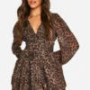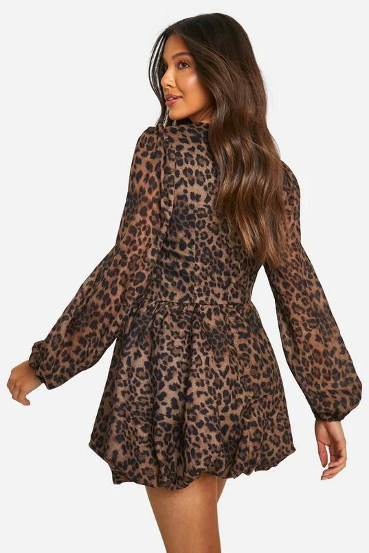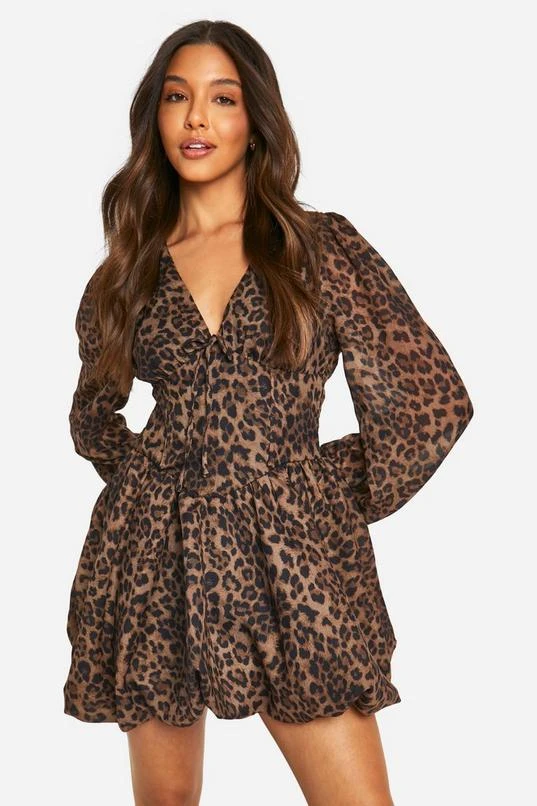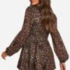 BOOHOO Chiffon Leopard Print Puff Sleeve Milkmaid Skater Dress