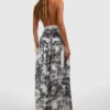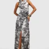 BOOHOO Chiffon Maxi Leopard Print Halterneck Dress