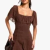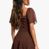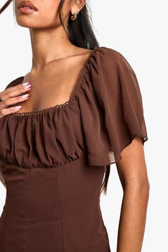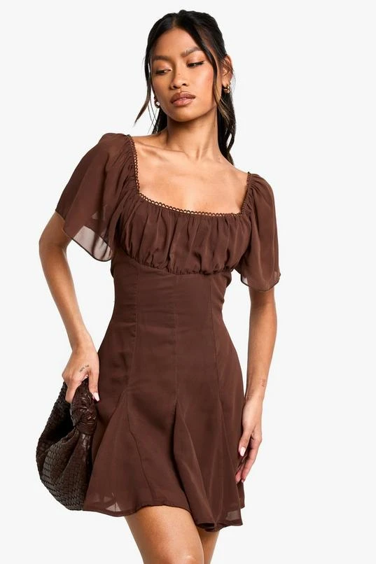 BOOHOO Chiffon Milkmaid Godet Hem Mini Dress