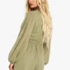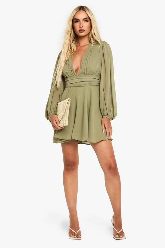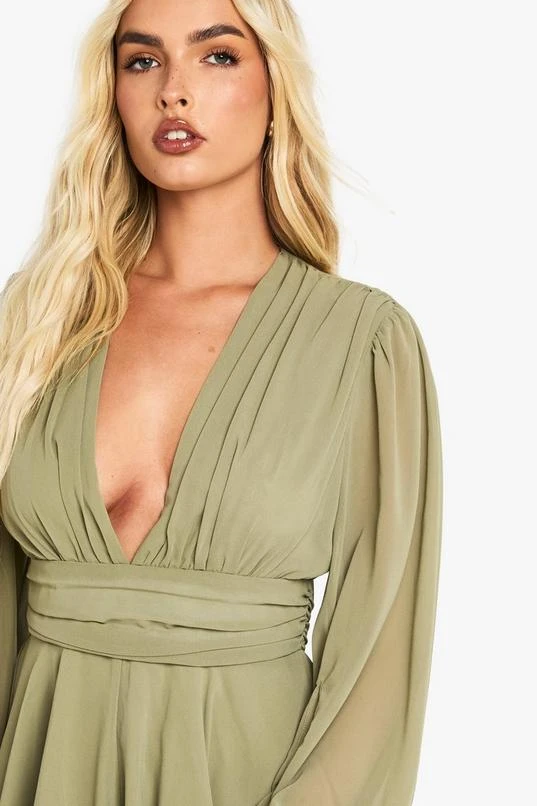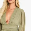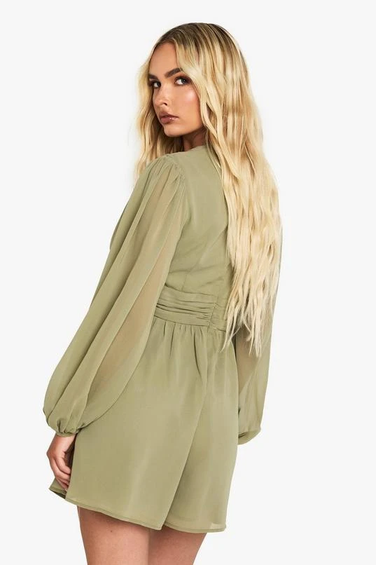 BOOHOO Chiffon Plunge Ruched Waist Playsuit