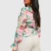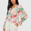 BOOHOO Chiffon Print Ruffle Blouse