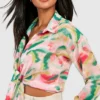 BOOHOO Chiffon Print Tie Blouse