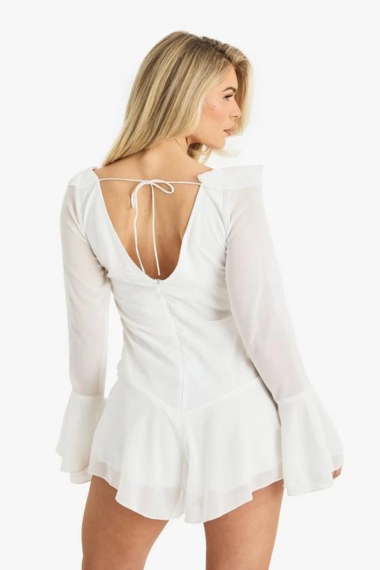 BOOHOO Chiffon Ruffle Godet Hem Playsuit