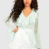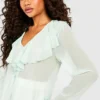 BOOHOO Chiffon Ruffle Open Front Blouse