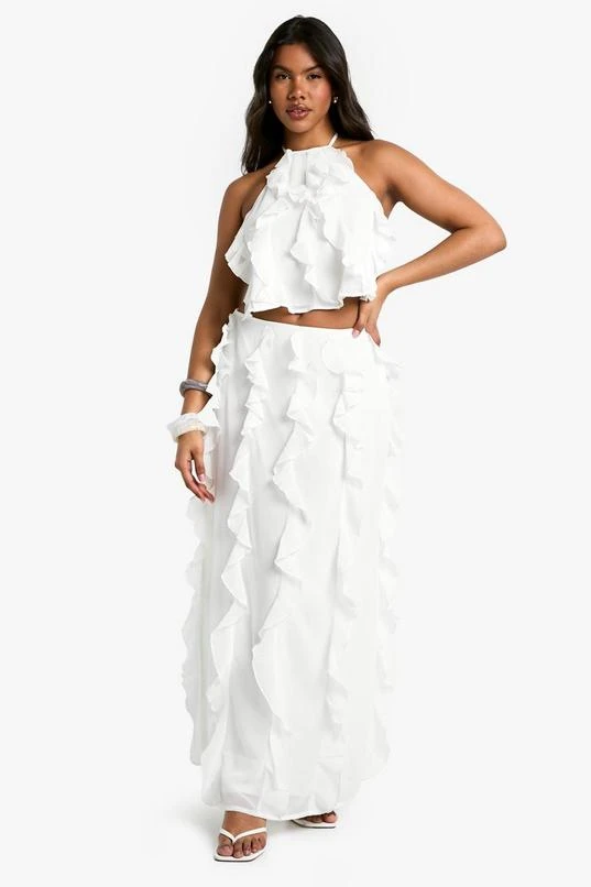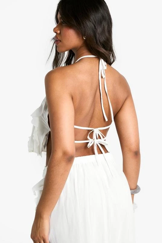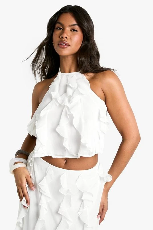 BOOHOO Chiffon Ruffle Racer Neck Cami