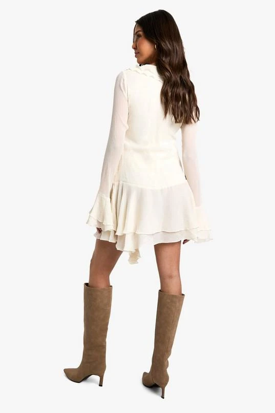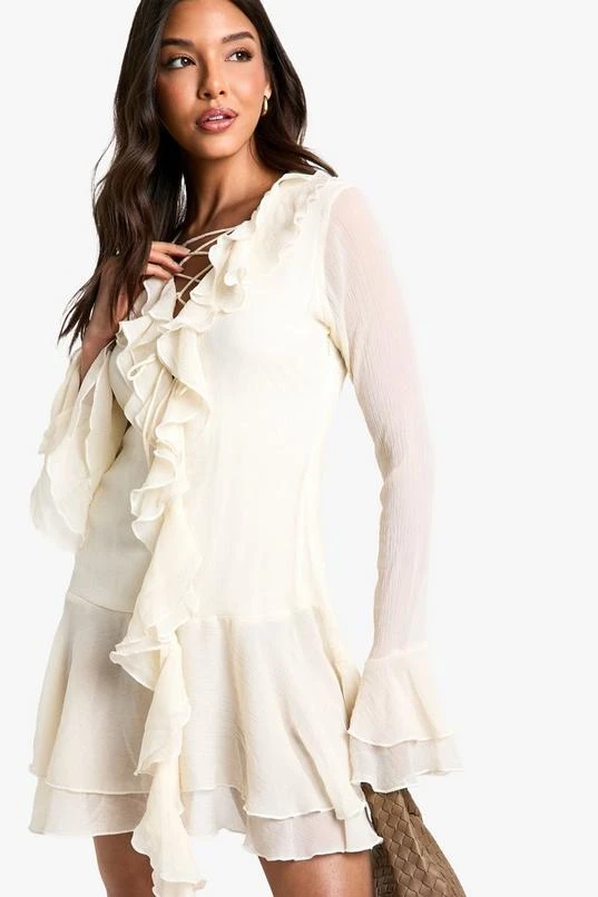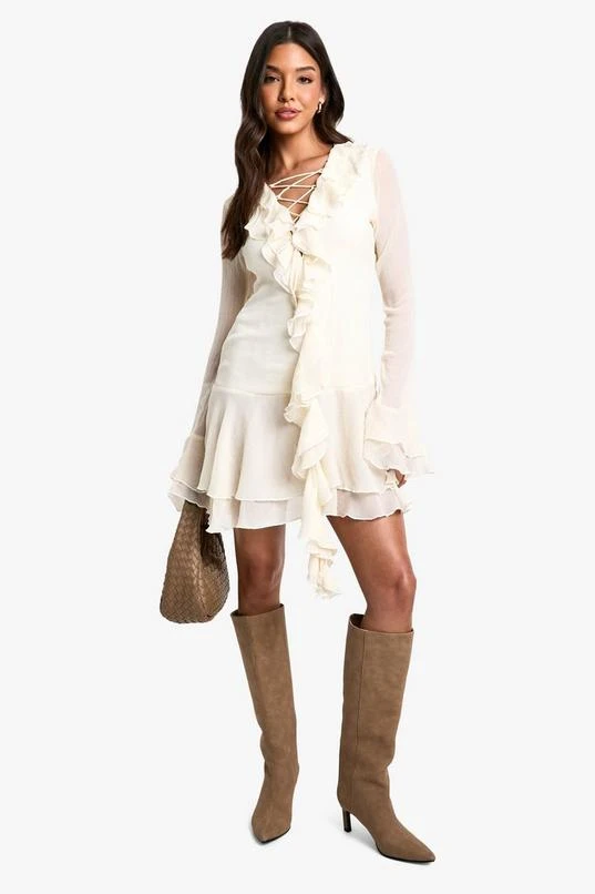 BOOHOO Chiffon Ruffle Tie Shift Dress