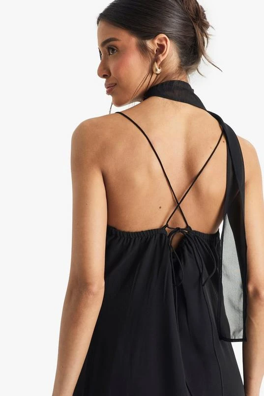 BOOHOO Chiffon Slip Dress With Neck Tie