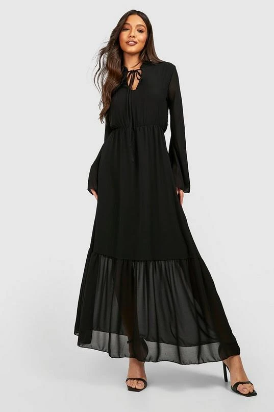 BOOHOO Chiffon Tiered Midi Smock Dress