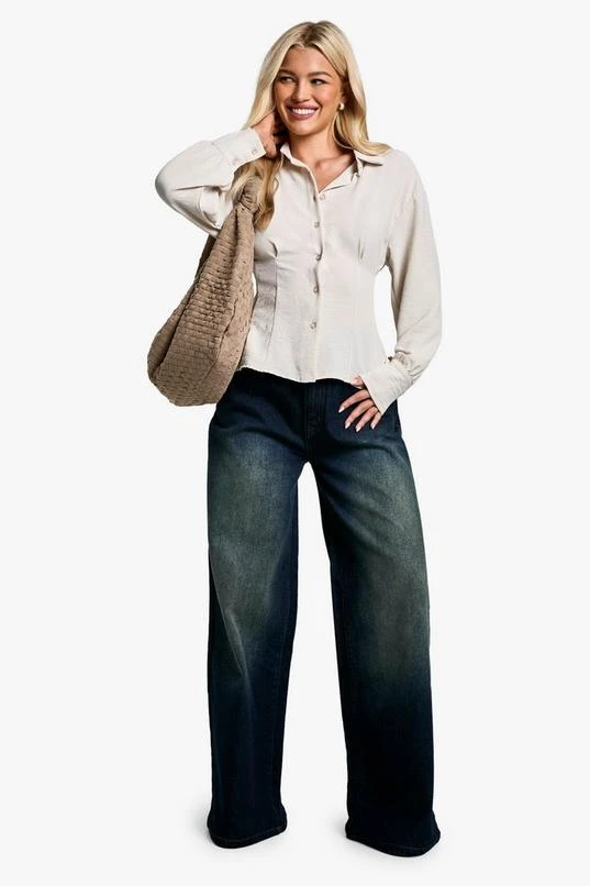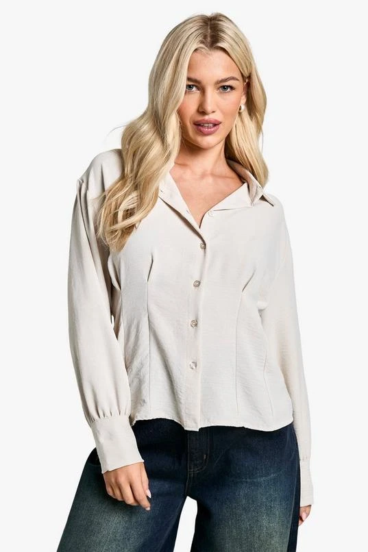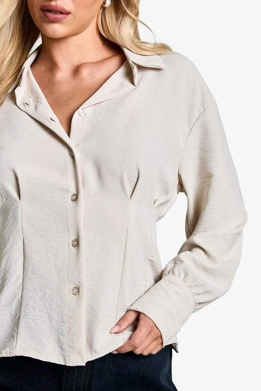 BOOHOO Cinched Waist Hammered Blouse