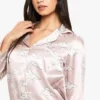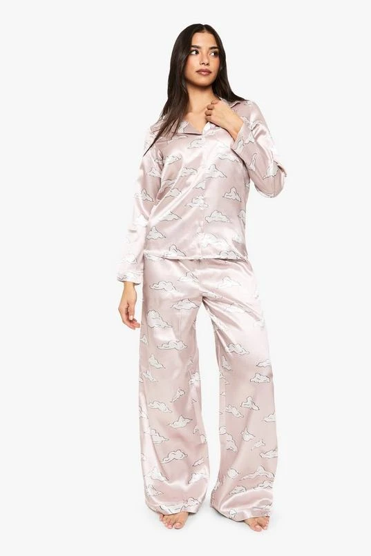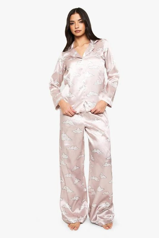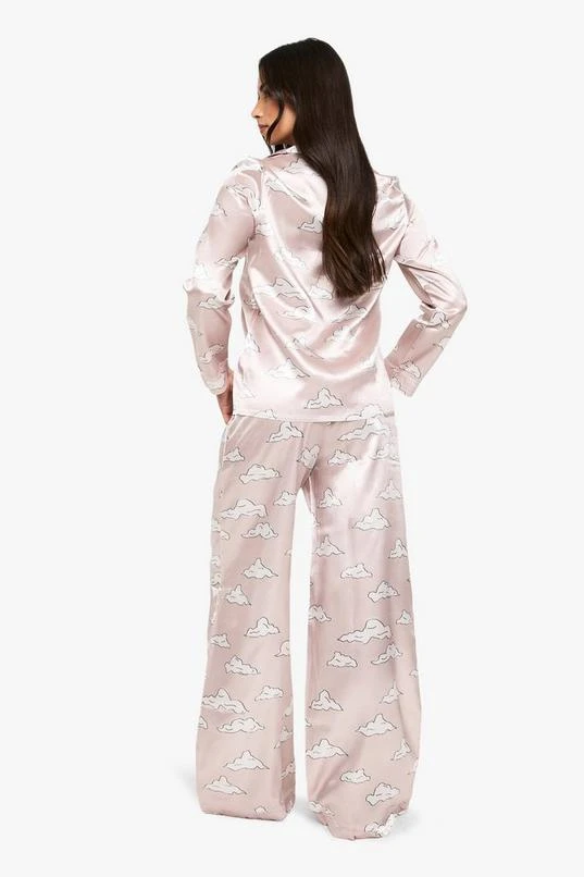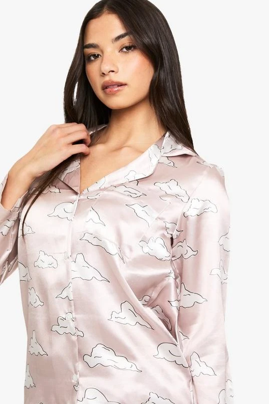 BOOHOO Cloud Print Satin Long Sleeve Shirt & Trousers Pyjama Set