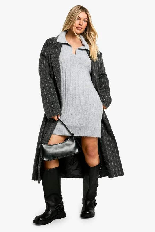 BOOHOO Collar Detail Cosy Knitted Jumper Dress