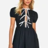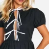 BOOHOO Contrast Bow Front Mini Smock Dress