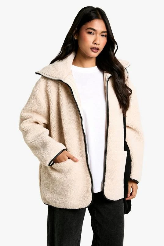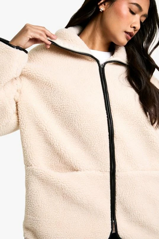 BOOHOO Contrast Detail Funnel Neck Teddy Jacket