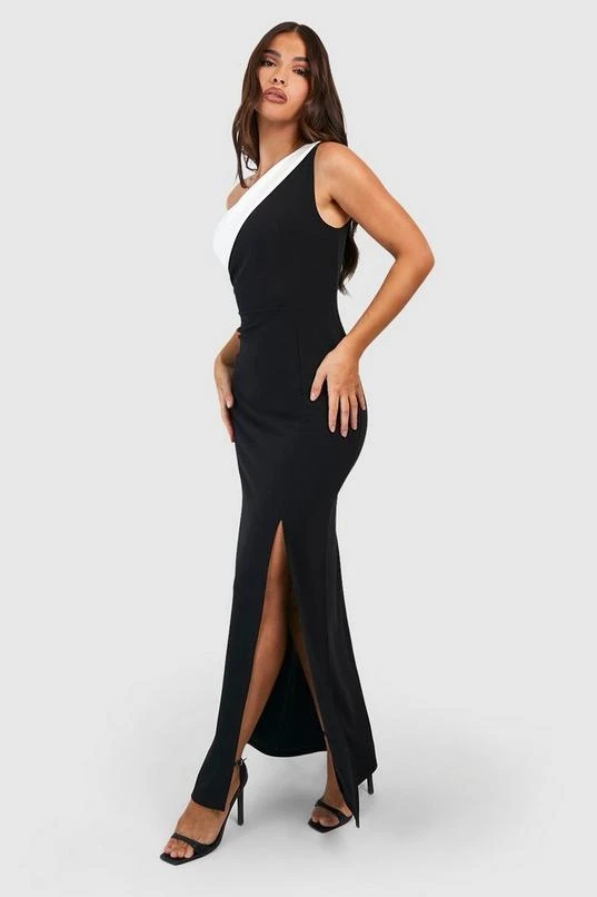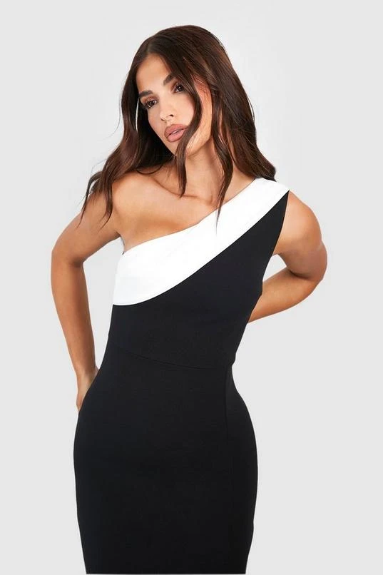 BOOHOO Contrast Mono Asymmetric Maxi Dress