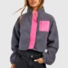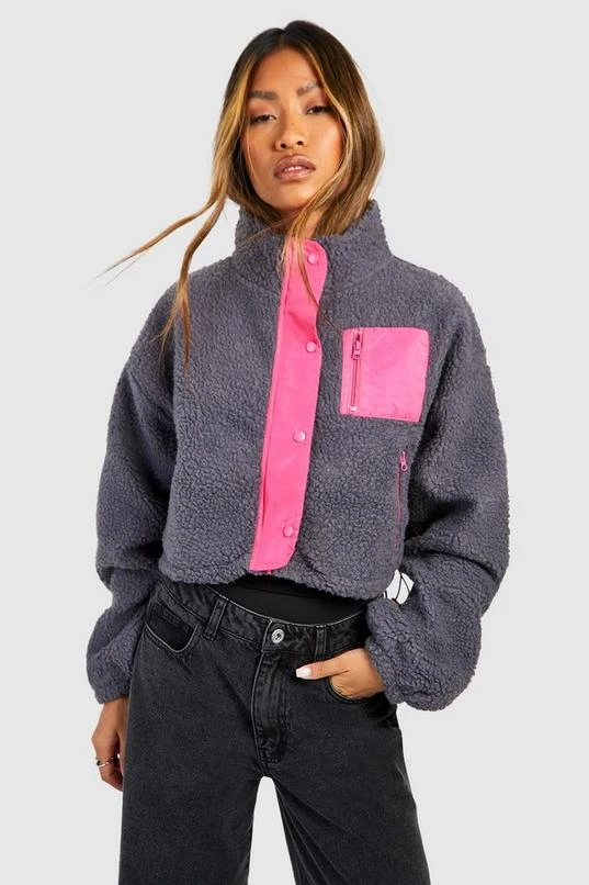 BOOHOO Contrast Nylon Pocket Teddy Jacket