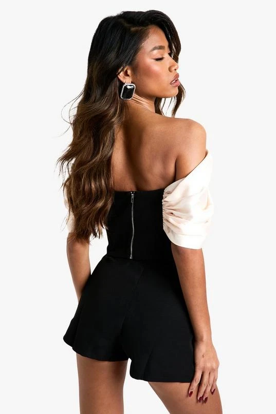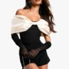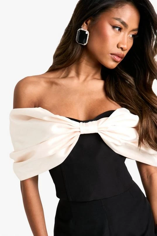 BOOHOO Contrast Oversized Bow Bardot Crop Top