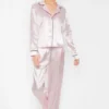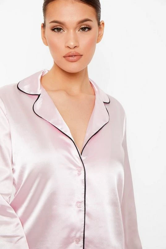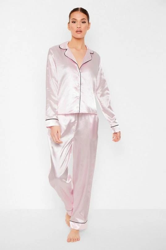 BOOHOO Contrast Piping Button Down Satin Pajama Set