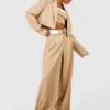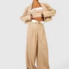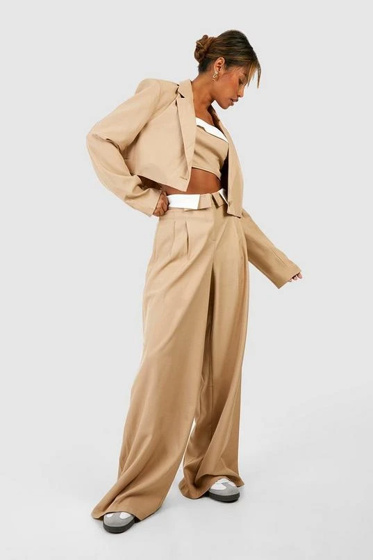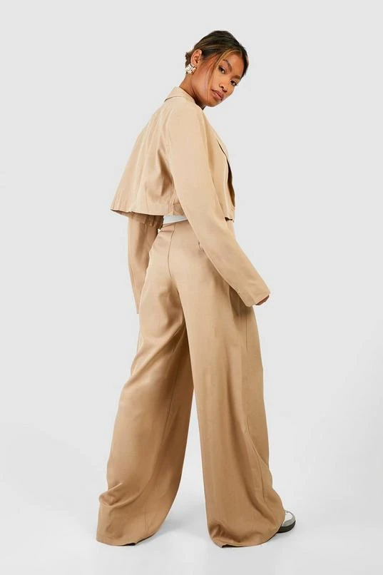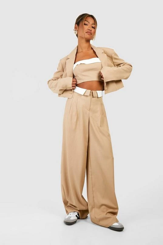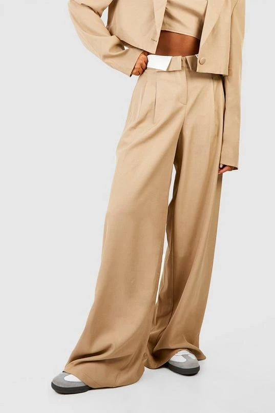 BOOHOO Contrast Waistband Wide Leg Dress Pants