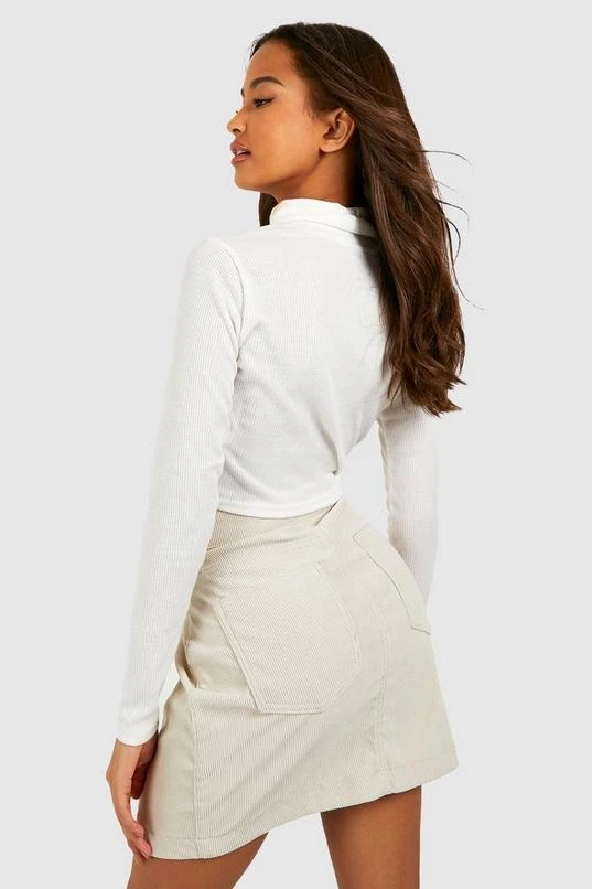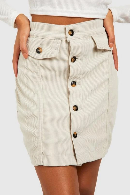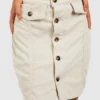 BOOHOO Cord Button Front High Waisted Skirt