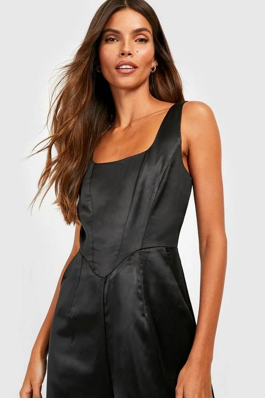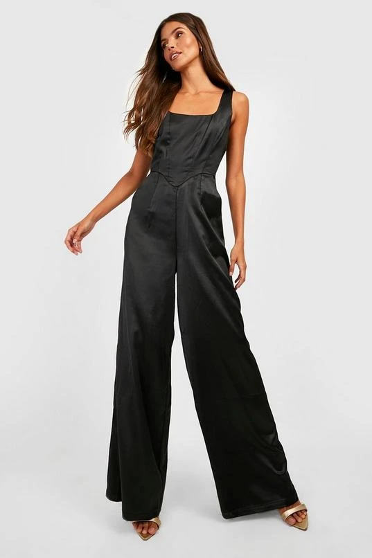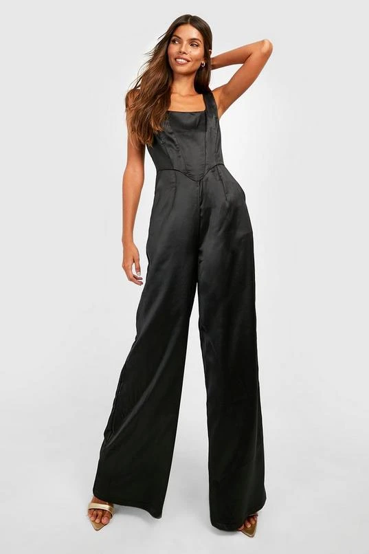 BOOHOO Corset Detail Wide Leg Jumpsuit