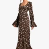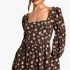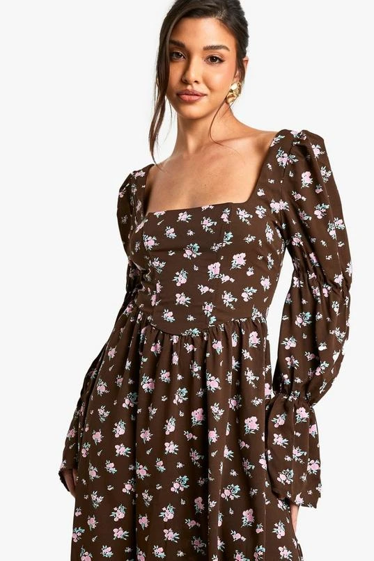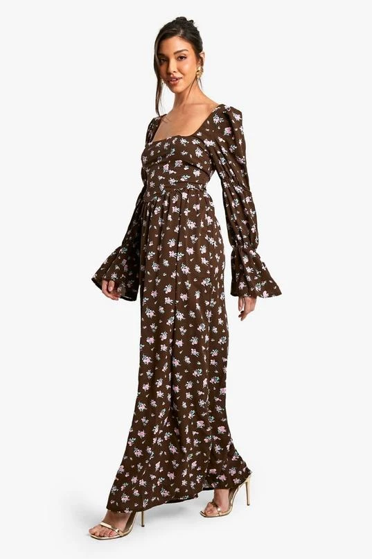 BOOHOO Corset Floral Print Puff Sleeve Milkmaid Maxi Dress