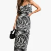 BOOHOO Cotton Blend Plunge Midaxi Dress
