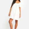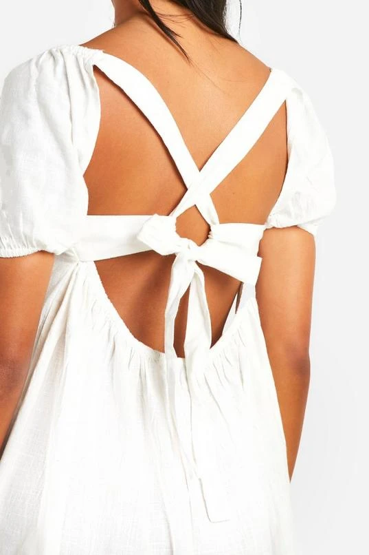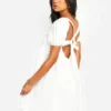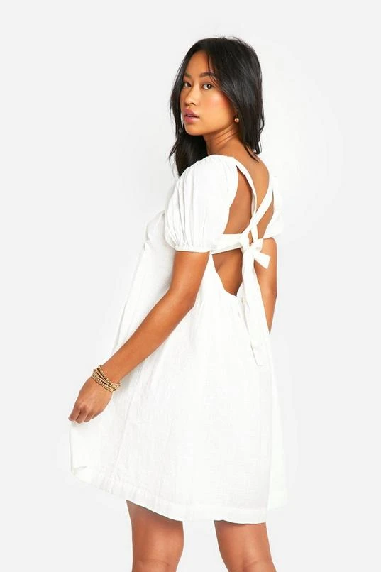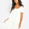 BOOHOO Cotton Blend Puff Sleeve Smock Dress