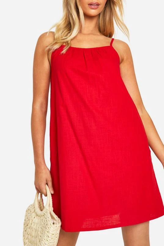 BOOHOO Cotton Blend Strappy Swing Dress