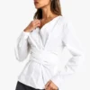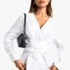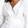 BOOHOO COTTON POPLIN BELTED WRAP SHIRT