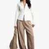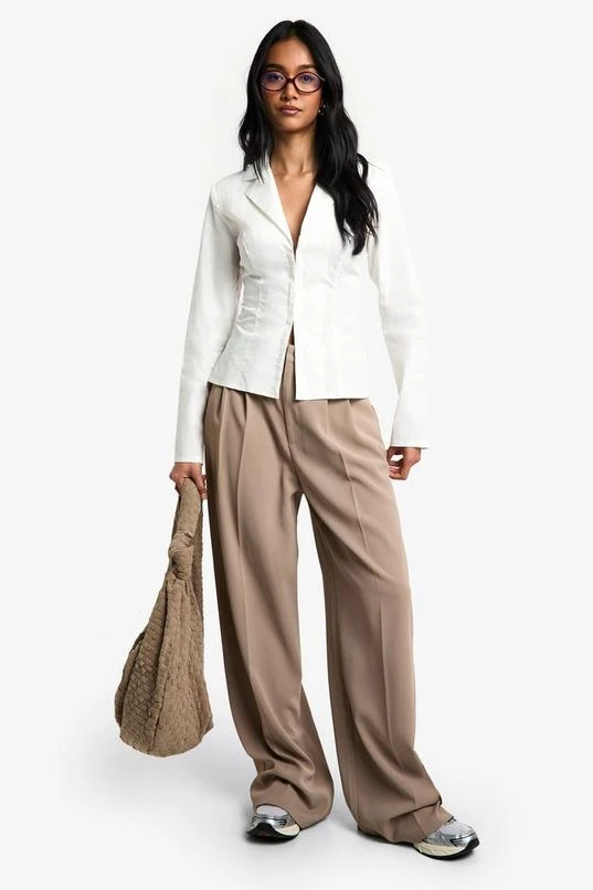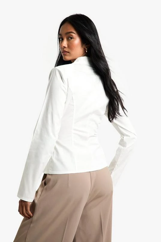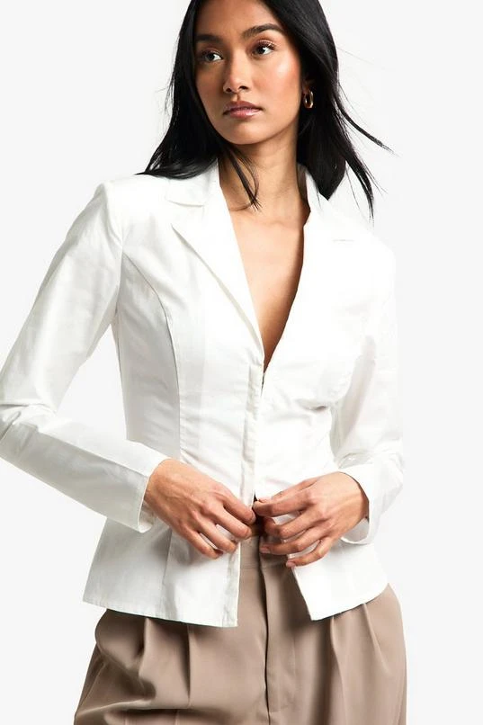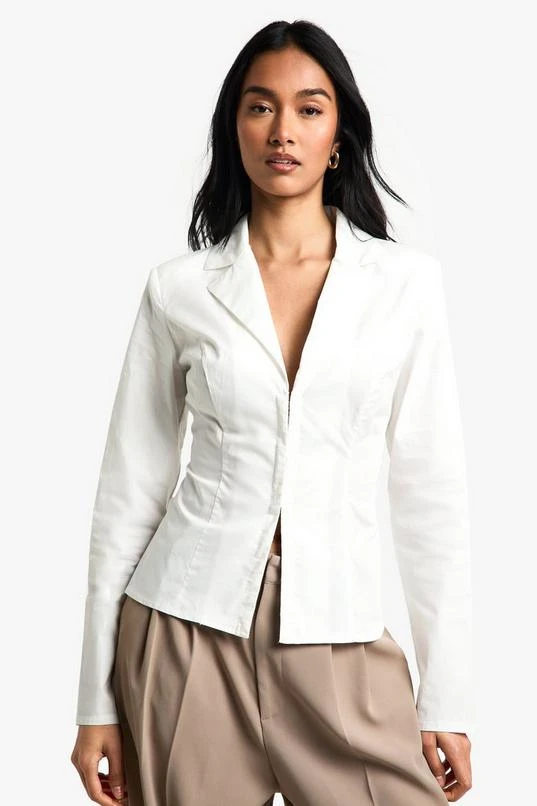 BOOHOO Cotton Poplin Hook & Eye Cinched Shirt