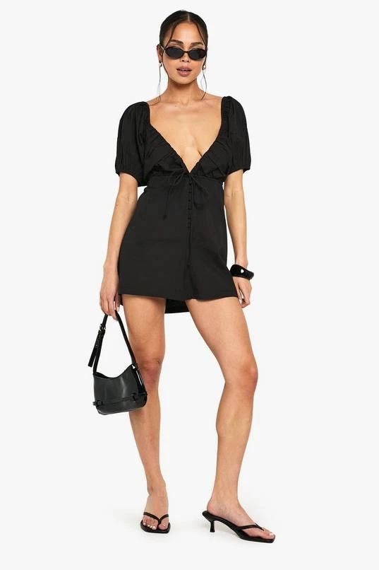 BOOHOO Cotton Poplin Puff Sleeve Playsuit